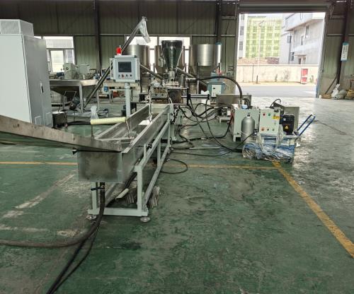 - 雙階造粒機:- 第一階(雙螺桿):高速混合、塑化,適合高填充、高改性料。- 第二階(單螺桿):低速擠出,降低剪切和溫度,保護熱敏性材料(如PVC、低煙無鹵料)。- 優(yōu)點:提高產(chǎn)量、改善顆粒質(zhì)量,減少材料降解。3. 按切粒方式分類 - 水冷拉條切粒:傳統(tǒng)方式,顆粒外觀好,適合硬料(如PE、PP、ABS)。- 熱切造粒(水下熱切、風冷熱切):- 水下熱切:顆粒圓潤、冷卻快,適合軟料(如TPE、TPR)、PVC、低煙無鹵料。- 風冷熱切:無需水槽,適合干燥環(huán)境或避免水分影響的材料。- 磨面切粒:適用于極低熔點材料(如石蠟),通過旋轉(zhuǎn)磨盤將熔融料切斷。三、核心組成部分1. 擠出系統(tǒng):螺桿、機筒(分段加熱/冷卻)、模頭(快開式、便于更換)。2. 喂料系統(tǒng):定量喂料機(螺旋式、振動式),確保原料穩(wěn)定輸送。3. 加熱與冷卻系統(tǒng):電加熱圈、冷卻水套,精確控制溫度(防止材料降解或塑化不良)。4. 切粒系統(tǒng):切刀(動刀/定刀)、刀架、傳動裝置,確保顆粒均勻。5. 控制系統(tǒng):PLC+觸摸屏,實時監(jiān)控溫度、壓力、轉(zhuǎn)速,可存儲工藝參數(shù)。6. 輔助設(shè)備:干燥機、混料機、篩分機、除塵設(shè)備(環(huán)保要求)。四、常見應(yīng)用場景1. 新料改性:添加玻纖、碳纖、阻燃劑等,生產(chǎn)增強、阻燃、導電塑料顆粒(如PA6/66、PC/ABS改性)。2. 再生回收:將廢舊塑料(如礦泉水瓶、薄膜、家電外殼)破碎、清洗后造粒,實現(xiàn)資源循環(huán)。3. 電纜料生產(chǎn):PVC電纜料、低煙無鹵(LSZH)電纜料、交聯(lián)聚乙烯(XLPE)電纜料等。4. 色母粒/功能母粒:高濃度色母、抗氧母粒、填充母粒(如碳酸鈣母粒)。5. 特殊材料:熱敏性材料(PVC、PET)、高填充料(如CaCO3含量>50%)、生物降解塑料(PLA、PBAT)。五、選型注意事項1. 原料特性:- 熔點/熱敏性:PVC、PET需低溫、低剪切;PE、PP可承受較高溫度。