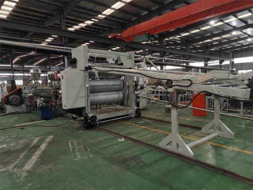 塑料片材生產(chǎn)線設(shè)備特點(diǎn):這套設(shè)備是環(huán)保型;整套設(shè)備不需要接外循環(huán)水系統(tǒng);自帶循環(huán)冷卻統(tǒng)是我公司專利產(chǎn)品,(發(fā)明專利號(hào):CN201911312134.6)1.最大好處:主機(jī)0水排放;無(wú)水污染;環(huán)保好過(guò)2.齒輪箱冷卻采用:采用環(huán)保冷卻系統(tǒng)(環(huán)保型:發(fā)明專利號(hào):CN201911312134.6)不需要接外循環(huán)水冷卻,不用徘外水;采用閉環(huán)循環(huán)系統(tǒng),不用擔(dān)心長(zhǎng)時(shí)間使用水冷卻會(huì)產(chǎn)生水垢把冷卻器堵住,導(dǎo)致齒輪箱損壞3.主機(jī)水箱冷卻系統(tǒng)采用:采用環(huán)保冷卻系統(tǒng)(環(huán)保型:發(fā)明專利號(hào):CN201911312134.6)不需要接外循環(huán)水冷卻,不用徘外水;采用閉環(huán)循環(huán)系統(tǒng),4.真空泵采用環(huán)保冷卻系統(tǒng)(環(huán)保型:發(fā)明專利號(hào):CN201911312115.3)不需要接外循環(huán)水冷卻,不用徘外水;采用閉環(huán)循環(huán)系統(tǒng),5.節(jié)能:普通筒體筒體冷卻;例如:第5區(qū)溫度超高;這是電子閥導(dǎo)通;第5區(qū)冷卻回水就會(huì)影響第六區(qū)和第四區(qū)的溫度下降;就會(huì)導(dǎo)致第四六區(qū)加溫;這種情況會(huì)一直循環(huán)出現(xiàn);導(dǎo)致電費(fèi)浪費(fèi);我們現(xiàn)在采用環(huán)保型就徹底解決這個(gè)問(wèn)題;加我們委托第三方開(kāi)發(fā)溫控模塊,溫控加熱系統(tǒng)比同類設(shè)備節(jié)能:10-20%電費(fèi),就是每噸能為客戶節(jié)省電費(fèi)15元,