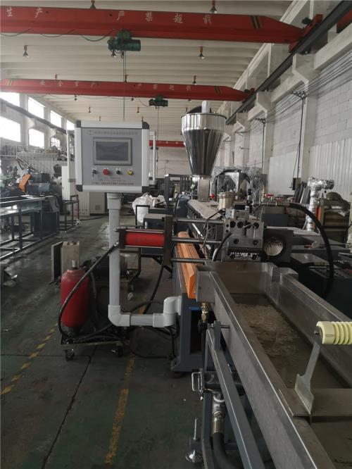 水槽熱水經(jīng)過濾器到環(huán)保型冷卻器;水槽架里安裝:4組環(huán)保風(fēng)冷卻系統(tǒng)(環(huán)保型:發(fā)明專利號(hào):2020107265672)不需要接外循環(huán)水冷卻,不用徘外水;采用閉環(huán)循環(huán)系統(tǒng);5.節(jié)能:普通筒體筒體冷卻;例如:第5區(qū)溫度超高;這是電子閥導(dǎo)通;第5區(qū)冷卻回水就會(huì)影響第六區(qū)和第四區(qū)的溫度下降;就會(huì)導(dǎo)致第四六區(qū)加溫;這種情況會(huì)一直循環(huán)出現(xiàn);導(dǎo)致電費(fèi)浪費(fèi);我們現(xiàn)在采用環(huán)保型就徹底解決這個(gè)問題;我們設(shè)備比同類設(shè)備節(jié)能:10-15%電費(fèi)6.減少投資款:3米*3米*2.5米冷卻水池;60立方冷卻水塔及4KW高壓水泵2臺(tái)及管道,10天施工費(fèi)用:能減少固定投資大概:12萬元左右二、機(jī)組配置(一)單螺桿喂料系統(tǒng)1)單螺桿喂料機(jī); 電機(jī)功率:1.1kw;“三晶或羅賓漢”變頻調(diào)速器器;(二)JDL-65B雙螺桿擠出 1、高扭矩減速箱高扭減速箱,減速及扭矩分配部分合為一體,結(jié)構(gòu)緊湊;輸出軸轉(zhuǎn)速:500rpm;輸入軸轉(zhuǎn)速:1480rpm;滾針軸承選擇日本“IKO”,軸承減速扭矩分配系統(tǒng)的徑向軸承均為日本NSK軸承;齒輪采用優(yōu)質(zhì)合金材料,精度按ISO1328-1995圓柱齒輪精度制造,齒輪全部采用滲碳淬火硬齒面。