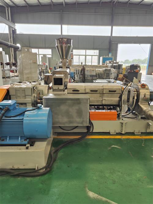 一、系統(tǒng)機(jī)組技術(shù)參數(shù)Ⅰ、機(jī)器顏色:主機(jī)為:公司標(biāo)色;電柜為:電腦色;防護(hù)罩:黃色Ⅱ、擠出工藝: 150L密煉機(jī)——自動提升機(jī)——雙碗強(qiáng)制喂料機(jī)——JDL-180單螺桿擠出機(jī)——液壓板式換網(wǎng)系統(tǒng)—-----磨面熱切機(jī)頭----——一級旋風(fēng)分離器---——二級旋風(fēng)分離器-----三級旋風(fēng)分離器------2.5m加長振動篩----——1噸風(fēng)冷成品料倉-------主機(jī)采用:PLC控制Ⅲ、加工物料:EVA+80-85%碳酸鈣母粒產(chǎn) 能:1200-1500公斤/小時(shí)(取決于客戶的配方、防銹母料造粒代加工_PE防銹母料造粒代加工_佳德智能裝備工藝、生產(chǎn)條件)設(shè)備特點(diǎn):這套設(shè)備是環(huán)保型;