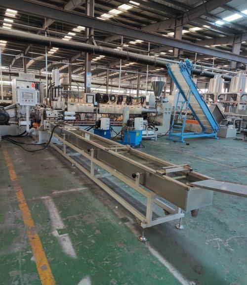 - 冷卻后的料條經(jīng)牽引機送入切粒機,切成直徑2-3mm、長度2-3mm的顆粒;